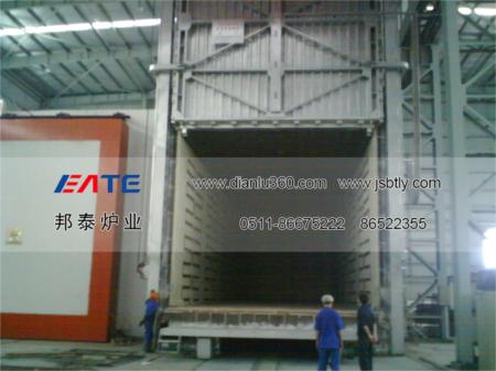 本臺車爐由爐體(包括爐襯)、爐門、爐車、爐門起吊機構、爐車行走機構、加熱元件、溫控系統(tǒng)、溫度記錄等部分組成。